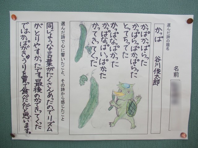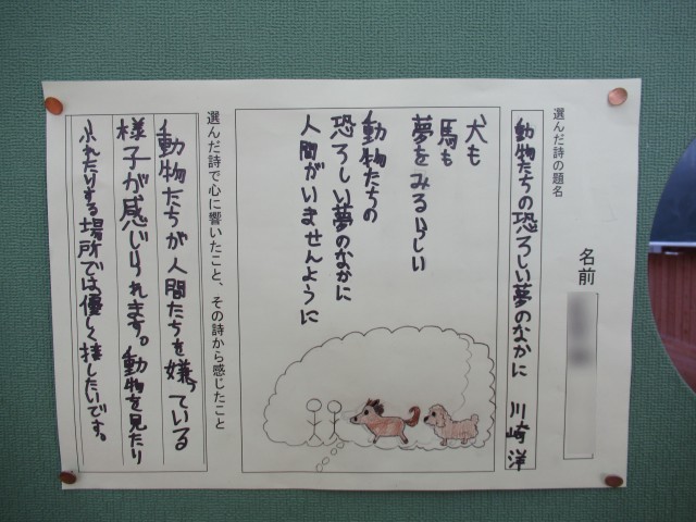 自分で選んで朗読し、視写した詩だそうです。一人一人の個性が感じられます。素敵な感性を大事に大事にしていってほしいです。6年生が小学校で学ぶのもあと19日となりました。