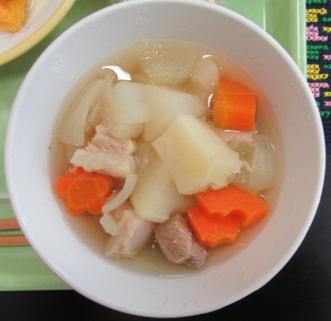年度内に2回も揚げパンが給食メニューに登場、子供たちは大喜びでした。きな粉たっぷりで、外はかりっと、中はふんわりのとてもおいしい揚げパン。今季初の伊予柑が酸っぱく感じられるほど、揚げパンは甘く幸せの味でした。ブロッコリーときのこのアヒージョ、ポトフも野菜の出汁がよく出ていておいしかったです。調理員さん、今日もありがとうございました。