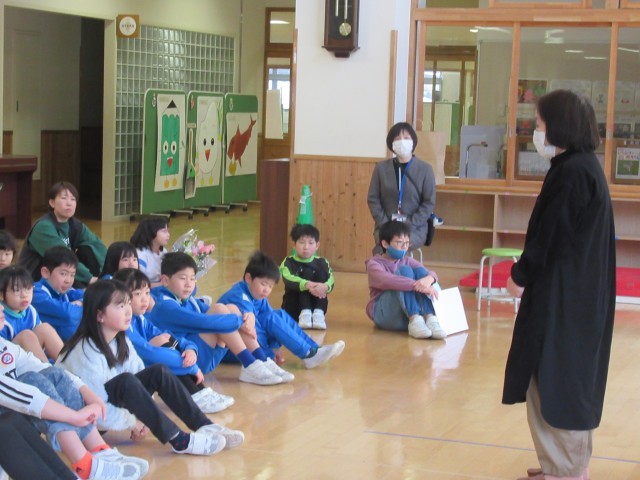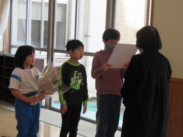 この一年間、子供たちは、毎週火曜日の読み聞かせの時間をとてもとても楽しみに待っていました。子供たちの心情に合わせた絵本、季節を感じさせる絵本、平和を願う絵本、日本や世界について考える絵本等、たくさんたくさん読んで聞かせてくださいました。子供たちだけでなく、一緒に聞かせていただいた教員も心が豊かになりました。有難く、幸せなひとときでした。ありがとうございました。来年度もどうぞよろしくお願いいたします。