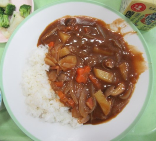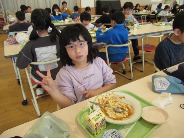3月最初の給食は、子供たちの多くが好きなハヤシライスでした。学校のハヤシライスは、ベーコンが入っています。それから、家庭で作るより断然野菜の量が多いので、たっぷり旨味が出ます。今日もおいしくいただきました。