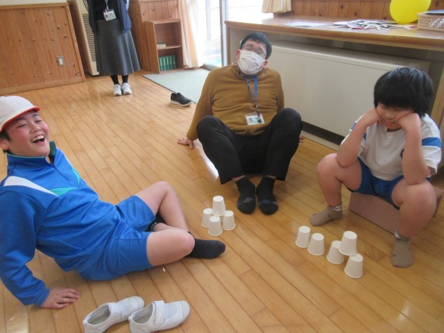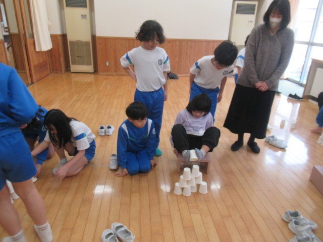今日は3,4年生を招待して「ゆるっと運動タイム」を楽しみました。これまでで一番多い人数の招待で、とても盛り上がりました。あおぞら級の振り返りでは、「楽しかった」という感想と「人数が多くてあまりふうせんを触れなかった」「座っている人がいて気になった」という感想が出て、困っている様子も見られました。「みんなで楽しみたい」という思いがより高まった様子でした。明日は、5年生を招待します。楽しめるといいなと思います。