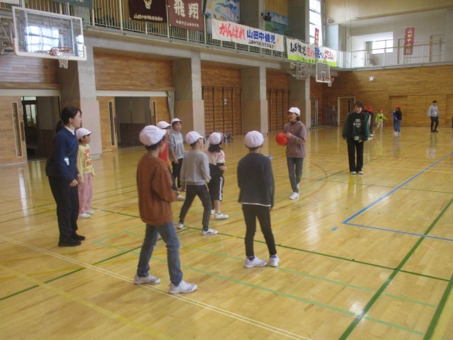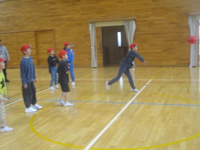 チーム内で、ボールを投げるように声をかける姿やボールを渡す姿も見られました。教員も参加し、全校のみんなで楽しみ、白熱したものになりました。