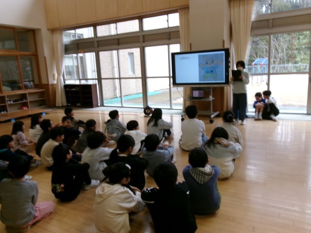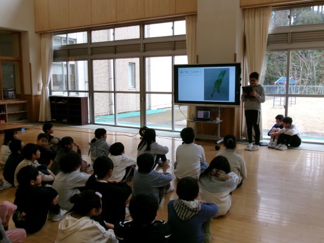 令和8年度の山田小学校のキャラクターを5年生で考えました。知・徳・体それぞれの部門に5体のキャラクターがノミネートしました。今日はその候補となったキャラクターを全校に紹介し、投票で決めてもらうことにしました。さあ、どのキャラクターが選ばれたのか、ドキドキです。