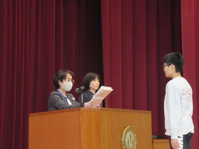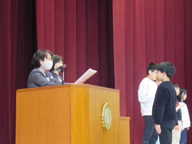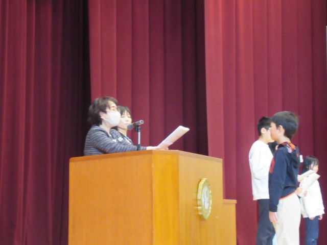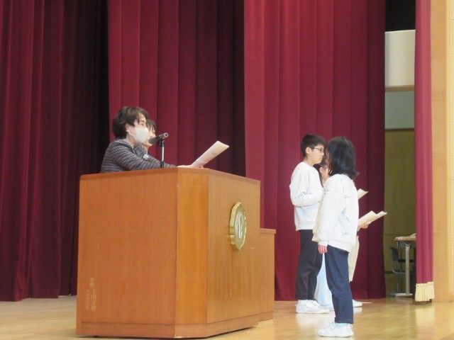 各学年の代表児童に、修了証を渡しました。みんな、堂々と立派な態度で臨んでいました。一年の歩み、確かな成長を感じました。