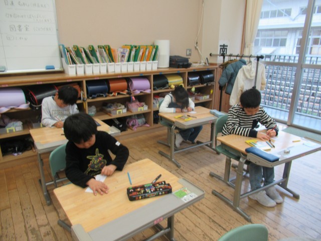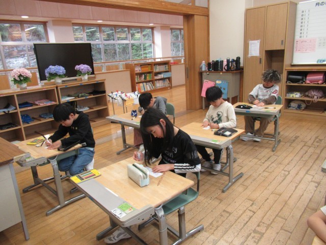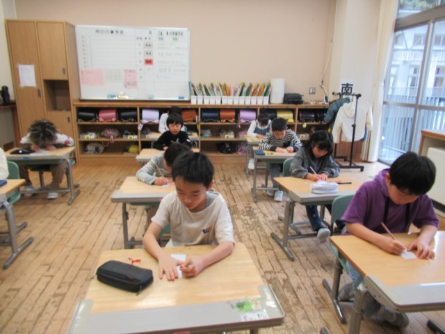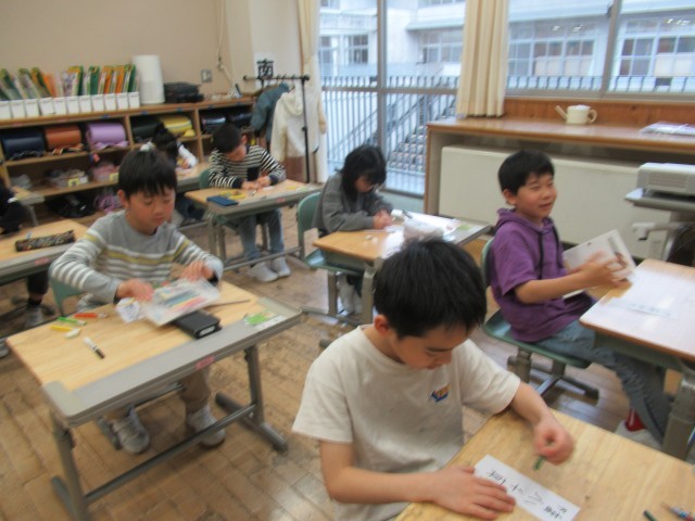 1年間、使う日直名札を書きました。一年間大切に使うものだから、真剣に気持ちを込めて、集中して子供たちはかいていました。一人一人のよさが表れている日直名札に仕上がりました。