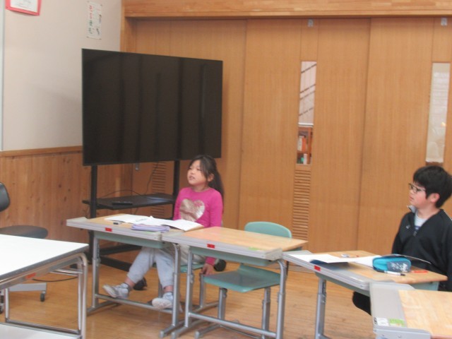 半分の子供たちが体調不良のため欠席中の5年生。4人の子供たちは、10、100、1000で割っていくと、商の小数点が左に動いていき、値が小さくなっていくことを学習していました。