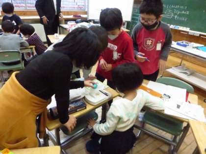 3年生の理科は、重さの学習をしています。粘土の形を変えると重さも変わるかどうかを電子秤で確かめました。