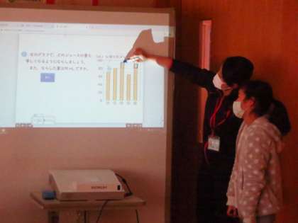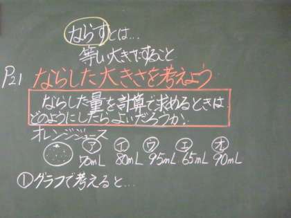 5年生の算数は、平均について学習しています。数値を平らにならすというイメージをみんなで話し合いながら身に付けていきました。