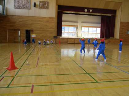 体育の時間に、キックベース遊びに取り組み始めました。ボールを遠くに蹴ったり、コーンまで力いっぱい走ったりして楽しみました。みんながもっとゲームを楽しめるように自分たちでルールを考えながら活動しました。