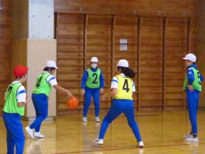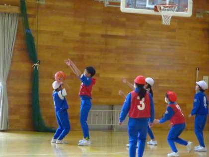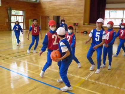 5、6年生のバスケットボールの時間は、この日が最終日でした。子供たちは、これまでの練習した成果を発揮し、ゲームに取り組んでいました。