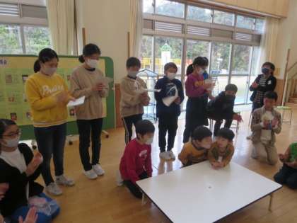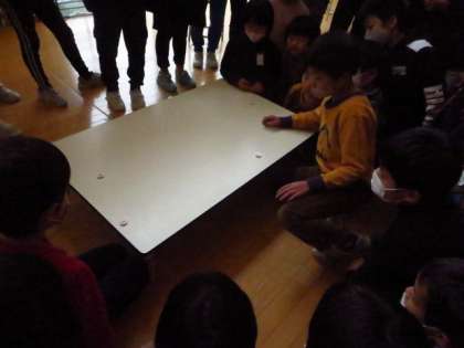 3日に、6年生が企画した「オセロはじきチャンピオン」を行いました。長休みに予選が行われ、昼休みに決勝が行われました。やる側も見る側も大変盛り上がりました。企画した6年生も嬉しそうでした。