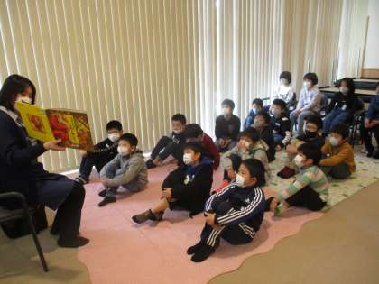 山田図書館の司書の先生に「むかしむかし とらとねこは」という絵本を読んでいただいたり、おすすめの本を紹介していただいたりしました。物語の世界に浸り、すてきなひとときを過ごすことができました。