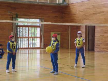 6年生の体育は、ソフトバレーボールに挑戦しています。7日は、パスやサーブの練習をしたり、練習試合をしたりしました。これから技能を高めて、チームみんなが協力して試合ができるように練習していきます。