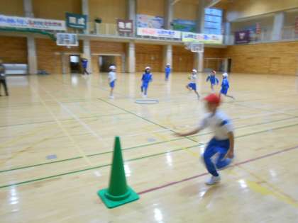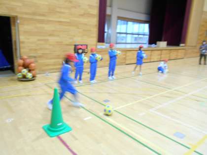 一人一人が、攻めたり守ったりしながら活躍していました。攻撃側がキックをするときに「いくよ〜」と声をかけ、守備側は「いいよ〜」と応えながら進行している様子は微笑ましかったです。