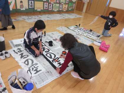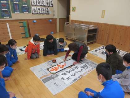今年度も、大石先生をお迎えして、書初めを指導していただきました。お手本を見せていただき、筆づかいを学んだり、一人一人に朱書きをしていただき、今後の課題を学んだりしました。金曜日には、1,2,4年生が指導していただく予定です。
