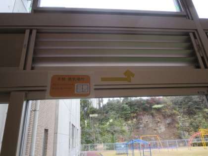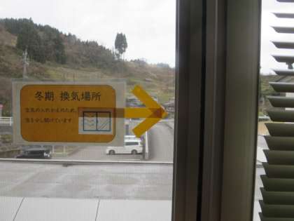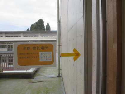 山田小中学校では、コロナウイルスの感染拡大防止として2段階換気を行ってます。外に面した廊下の戸を少し開けることで、学習している子供たちの教室の室温を保ったままで換気できるように工夫しています。
