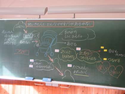 11日の2年生の道徳は、地域の関わりについて考えました。子供たちはみんなと話し合う中で、地域の方とのつながりを大切にすることで、心が温かくなることに気づきました。