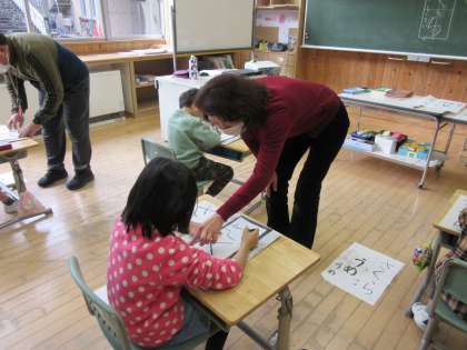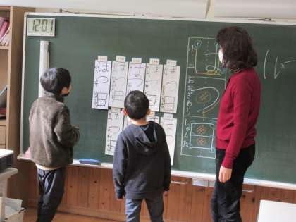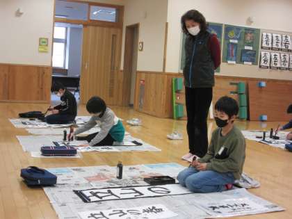 大石先生をお招きしての書初め指導がありました。4年生は、文字の大きさを考えながら書きました。低学年では、硬筆墨を使った書き方のこつを教わりました。大きく、力強く書けるようこれからも練習していきます。