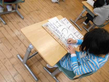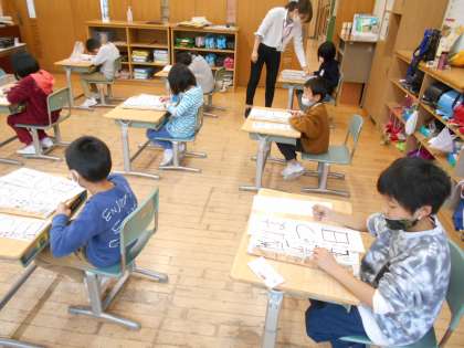 2年生は、先週に大石先生から指導されたことを思い出しながら書き初めの練習をしました。筆圧も強くなり、伸び伸びと力強く書くことが上達しています。