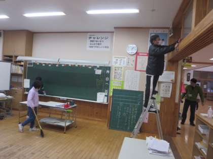14日から18日は、大掃除週間です。15日の目当ては、「黒板や棚の回りをきれいにする」でした。先生も子供たちも一生懸命掃除に取り組みました。