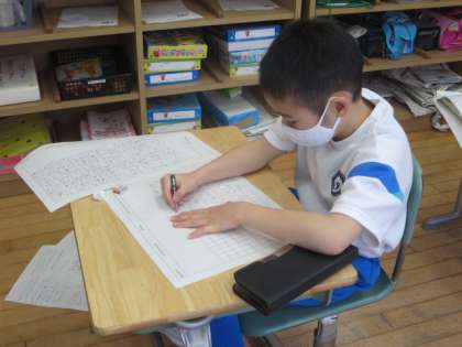 2年生の国語は、オリジナルの物語を書く学習に取り組んでいます。一人一人が登場人物を設定し、想像を膨らましてお話を考えていきました。どんな物語が仕上がるのか楽しみです。