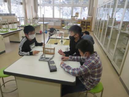 4年生の理科は、変化する水の姿について学習しています。この日は、水が氷になる様子を観察し、それに伴っての温度の変化を調べました。どの子も熱心に実験に取り組んでいました。