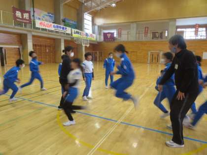 6年生は8の字跳びをがんばっています。今年度は、最高学年らしく350回跳べることを目標にしています。この日は、縄を回すスピード速くして練習をしました。どの子も戸惑いながらも必死に跳んでいました。