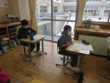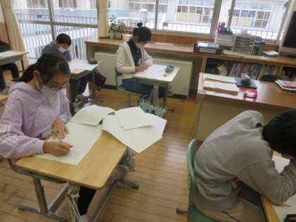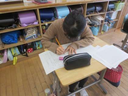 6年生は、いよいよ卒業文集の制作に取り組んでいます。先生に見てもらった原稿を丁寧に書き写していました。どの子も精一杯きれいな字を書こうと集中していました。