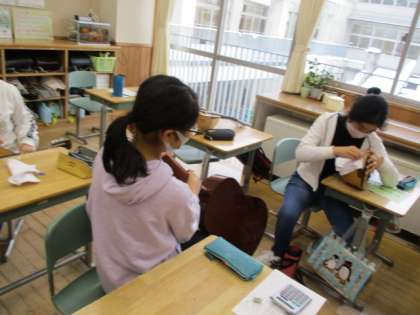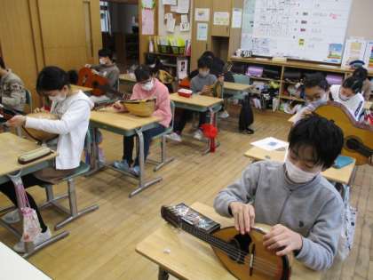 12月9日にマンドリン引退コンサート終えた6年生。これまで大切にしてきた楽器の、最後のお手入れをしました。6年生が使っていた楽器は、3学期から下級生に受け継がれます。名前シールをはがし、タオルで丁寧に拭き上げました。名残惜しそうに、しかしどこか誇らしげな子供たちでした。