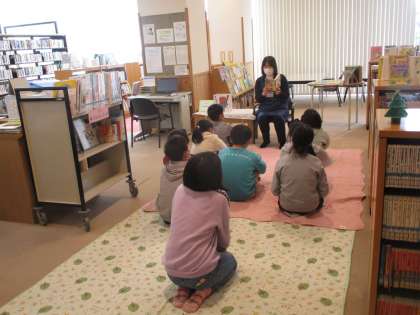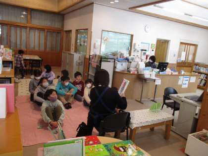 本日、4時間目に図書館でブックトークがありました。最初は、「オニのサラリーマン」という本の読み聞かせがあり、その後、「夜の小学校で」他3冊のブックトークがありました。図書館司書の方が、子供たちに語りかけるように心を込めて本を読んでくださり、子供たちも楽しそうな表情で話を聞いていました。
