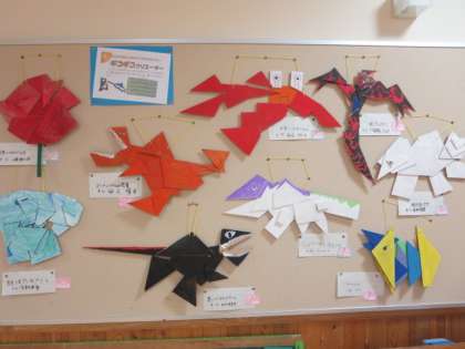 2学期末を迎え、子供たちががんばって作った作品が教室前や多目的スペースなどに展示されています。個別懇談会で来校されたときに、ぜひご覧ください。