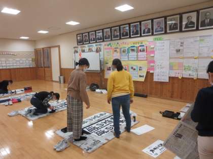 22日、最後の書初め練習を行いました。先生にきれいにはねるコツを教えてもらったり、友達と作品について話し合ったりと、思い思いの練習に取り組みました。来年の書初め大会が楽しみです。