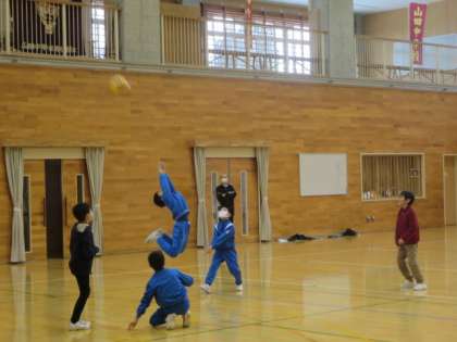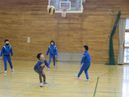 4年生の体育では、2つのグループに分かれて、ビーチボールを使って何回パスがつながるかを挑戦しました。子供たちは、声を掛け合ったり、ボールを追いかけたりと夢中で取り組んでいました。