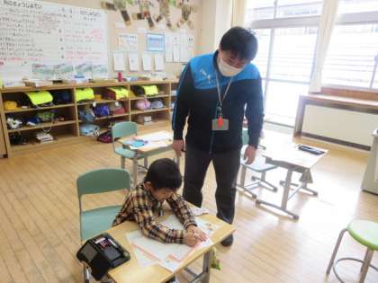 もうすぐ冬休みということで、1年生の子供たちは、先生にアドバイスをもらいながら冬休みの1日の過ごし方を考えました。冬休みが待ち遠しくなりました。