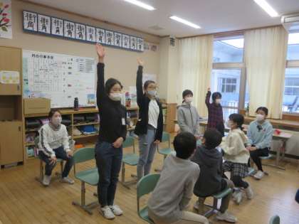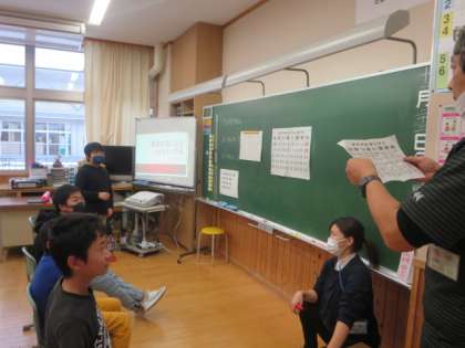 6年生は「最高の思い出をつくろう」という目当てで2学期末のお楽しみ会を行いました。グループ対抗で「目隠しチャンバラ」や「クイズ大会」に取り組み、みんな笑顔で、楽しい時間を過ごしました。