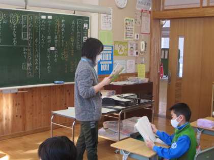 2年生の国語は説明文について学習しています。この日は、段落ごとの役割について考えるために、始めの段落と終わりの段落を比べ、気づいたことを話し合いました。