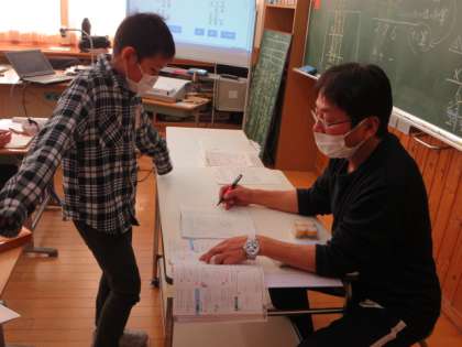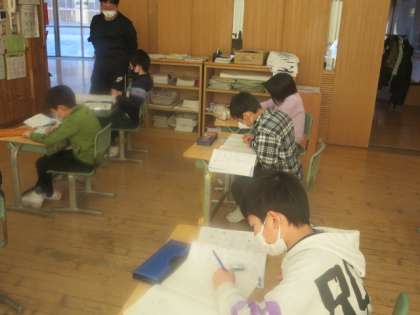 3年生の算数は、かけ算の筆算を学習しています。筆算の仕方を理解した後、練習問題に挑戦しました。だんだん早く正確にできるようになってきました。