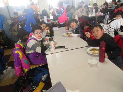 4班は、ストックをもたないプルークターンをたくさん練習しました。いっぱい滑ったのでお腹がぺこぺこに、あっと言う間にお昼のカレーを平らげました。