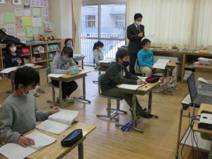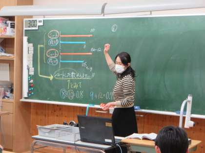 5年生の算数では割合の学習に取り組んでいます。数直線図の数値が、基にする量と比べられる量のどちらに当たるのかを考えると分かりやすいことに気づきました。