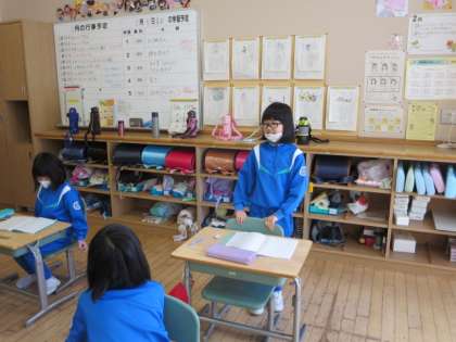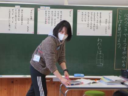 2年生の国語では、詩の学習をしています。教科書の中にある詩からお気に入りを選び、その理由を話し合っていました。