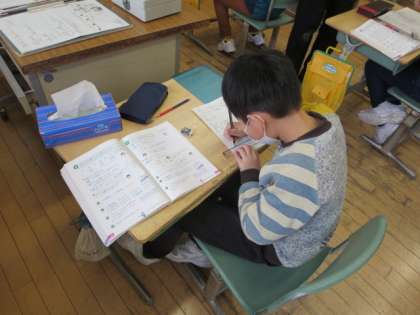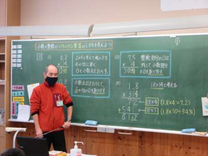 小数のかけ算の筆算では、小数点を答えに移動させることがとても大切です。子供たちは、学習したことをしっかり生かして計算に取り組んでいました。