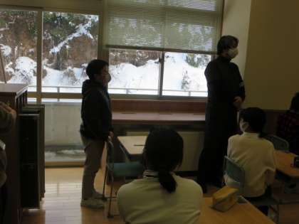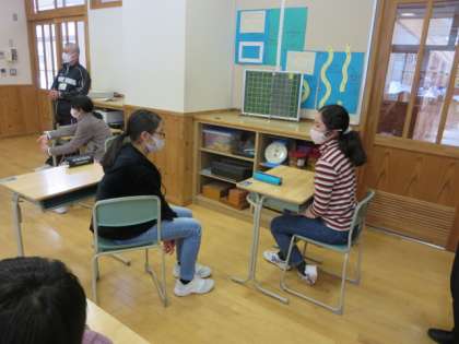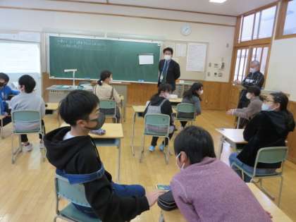 6年生は中学校進学に向けて、山田中学校の教室で、数学の授業を受けました。初めは中学校の先生が進める授業に戸惑っていましたが、だんだん笑顔になり、楽しく学習を進めていました。もうすぐ中学生という実感が湧いてきているようでした。