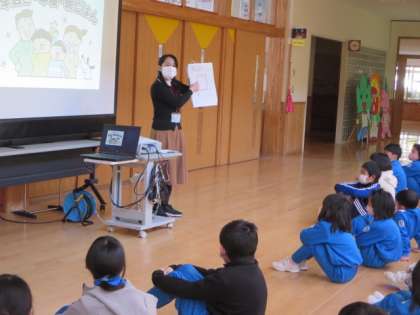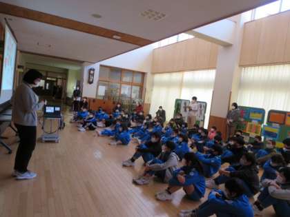 24日から、「生活習慣を見直しながら、元気な体で学習し、1年間のまとめをしよう」ということで「元気スイッチオン!」「家庭学習パワーアップ」週間が始まります。健康な体のための早寝、早起きと朝食については、養護教諭と栄養教諭から、家庭学習については、学力向上担当から話がありました。