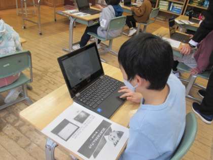 早速、今日は「クラスルーム」を開いて、選択式の健康観察をしたり、ミニテストをしたりしました。他にも、計算ドリルのQRコードを読んで解説動画を観たり、タイピングゲームのアプリを使ったりするなどして、少しずつ操作に慣れていきました。