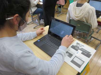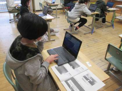 上学年の学習の様子です。下学年より操作も早く、次々と体験を進めることができました。「これで宿題だったら、どんどんやりたいなあ」という声も聞かれ、楽しみにしている様子が伝わってきました。