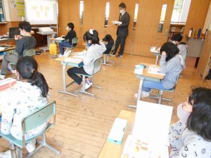 5年生は、算数で「立体の仲間分け」の学習に取り組みました。どのような形の平面や曲面で構成されているかに着目しながら分類しました。