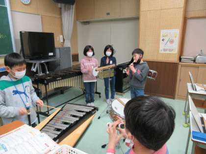 今日は、今年度最後の音楽の学習でした。1年間で学習した曲の中から、最後にみんなで合唱したい曲、合奏したい曲を五つ選び、歌ったり、演奏したりました。「この曲はグループで音つくりをして楽しかったから演奏したいです」「リコーダーの音色が重なってきれいだから気に入っています」「みんなで最後に元気よく歌いたい曲です」と一人一人の思いをみんなで聞き合って、曲を決めました。これからも、音楽を楽しむ子供たちであってほしいものです。