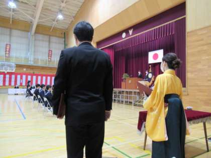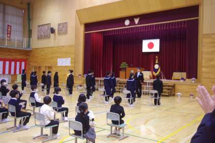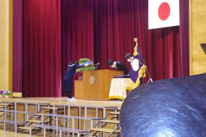 卒業式では、「ありがとうございました」と、一人一人が応えて卒業証書をいただきました。在校生も、卒業生も、これまでの思い出を振り返りながら、別れの言葉を言い、心を込めて歌を歌いました。
