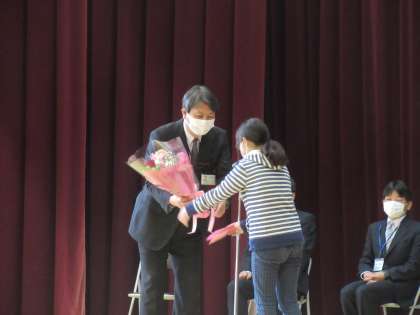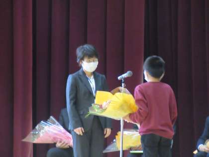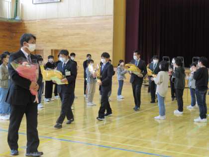 代表の児童がお礼の言葉とお花をおくり、最後には全員の大きな拍手でお見送りをしました。先生方に教えていただいたことを忘れずに、4月からも元気よく過ごしましょう。