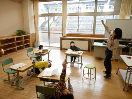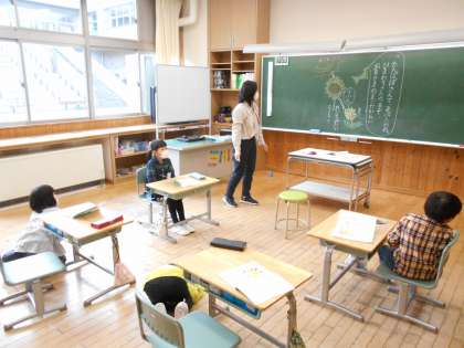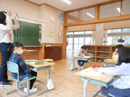 2年生は、国語の学習で教科書の扉のページの挿絵を見ながら、想像したことを話しました。